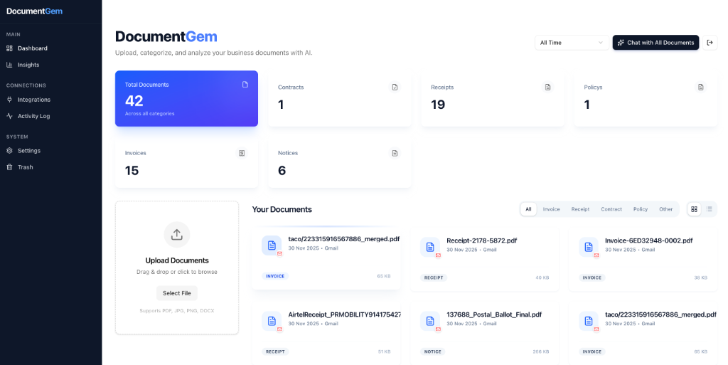 We automatically categorize your files into Invoices, Contracts, and Receipts to keep your life tidy.